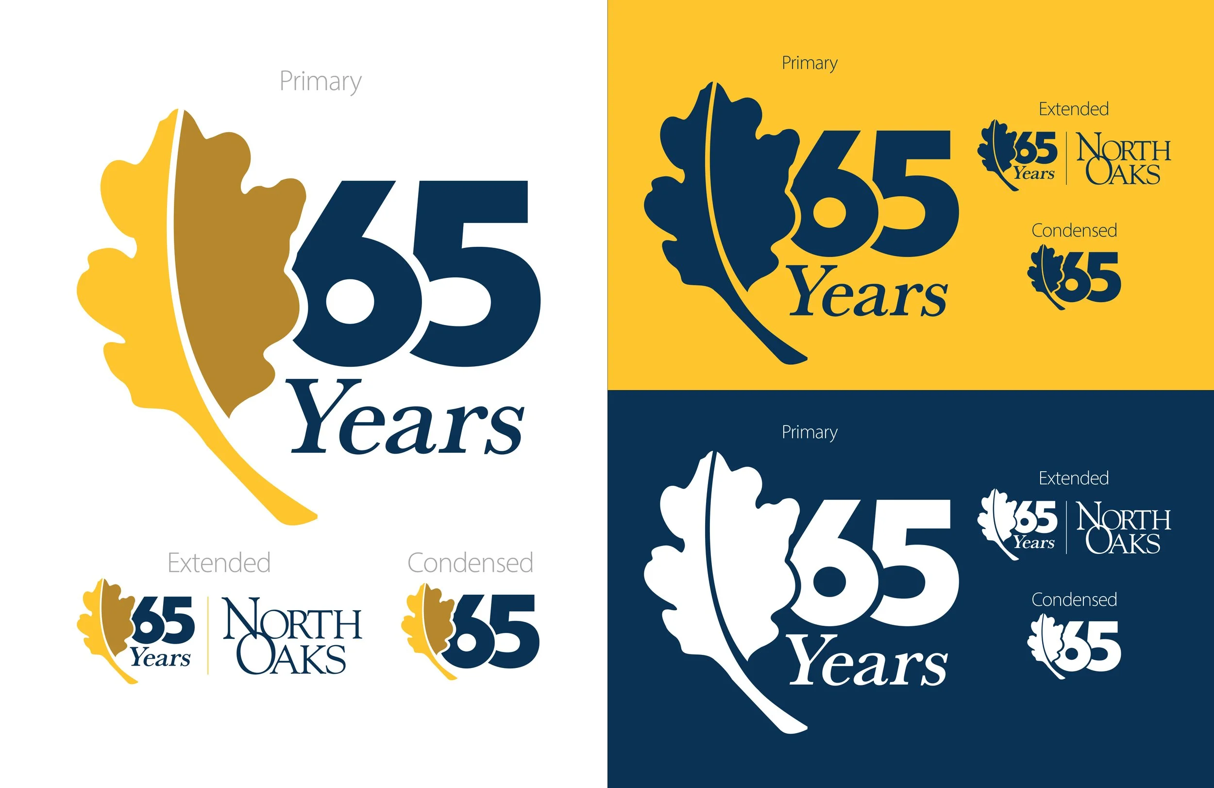 This adaptive system ensures that the anniversary identity is both instantly recognizable and contextually appropriate, preserving the heritage of North Oaks while celebrating its 65 years of service to the community.